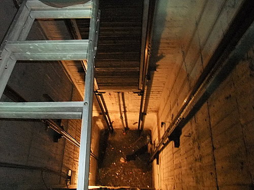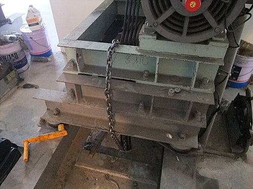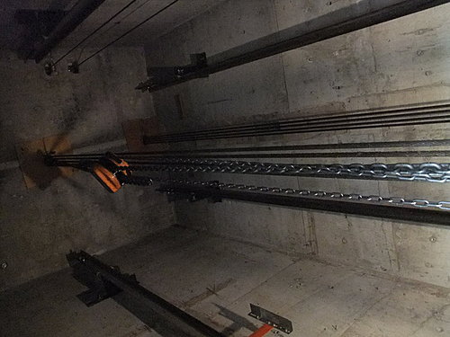 現在車廂只靠一部鏈條吊車吊起,當然調速機阻擋器早就放下了.