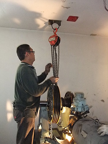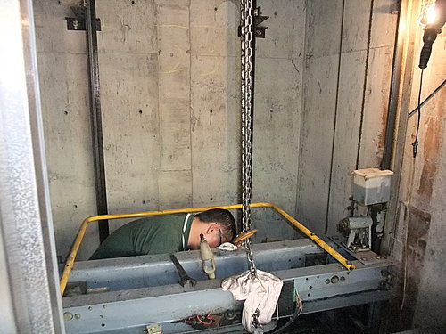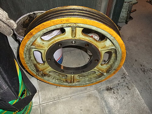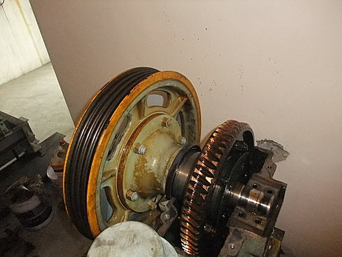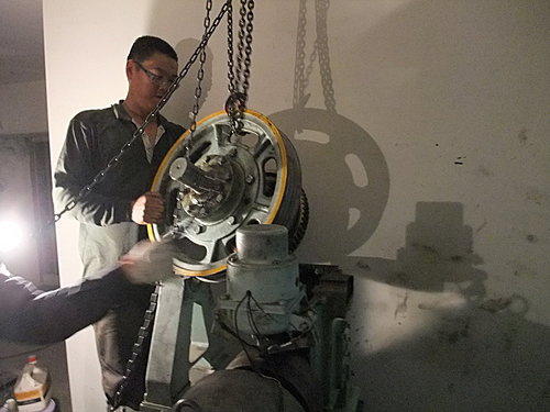 今天的工作是更換電梯鋼索和主機入力側軸承和油封的更換以及主機輪的重新