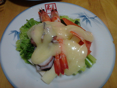 鮮蝦沙拉... 讚!!!! 沙拉醬是老闆自己調的,味道很棒.