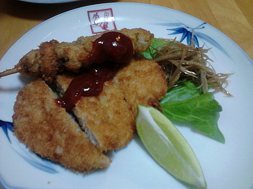 炸豬排和炸蚵仔.... 豬排是整塊肉現切的,薄薄的油炸粉襯托出食材的美味.