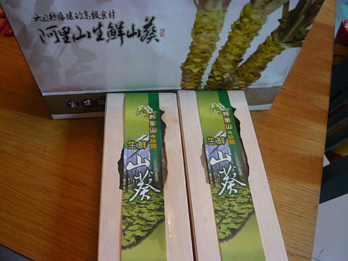 結果等到下午2點多時,老闆來了.帶著兩盒阿里山山葵來了.....
