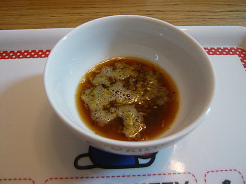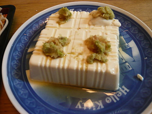 豆腐配上現磨的薑泥和山葵泥,淋上一些醬油,味道就很讚了...