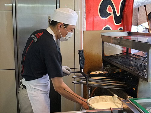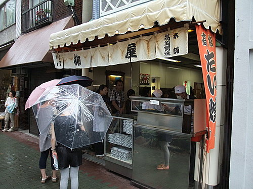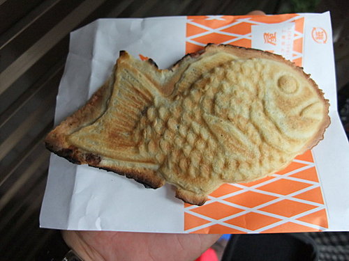 哈, 我們比阿部寬幸運,有吃到鯛魚燒(日幣140),鯛魚燒果然還是剛烤好的最好吃...
