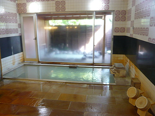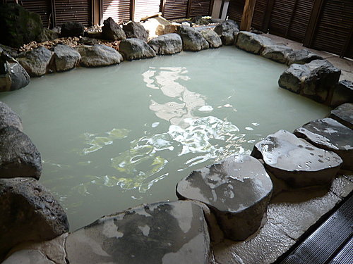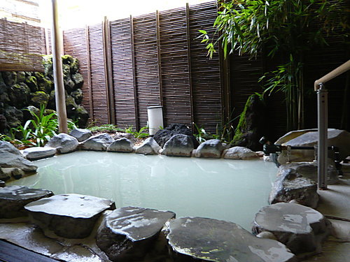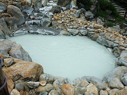 半露天的風呂,乳白色的泉水.