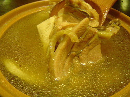 我點的麻油雞 , 雞肉應該是冷凍後用機器切的,所以切斷面相當整齊且每一肉片厚度都相當.