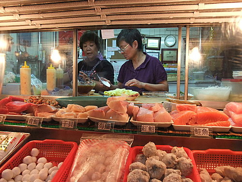 坐在攤前的小桌,正好可以看楊媽媽如何料理食材.