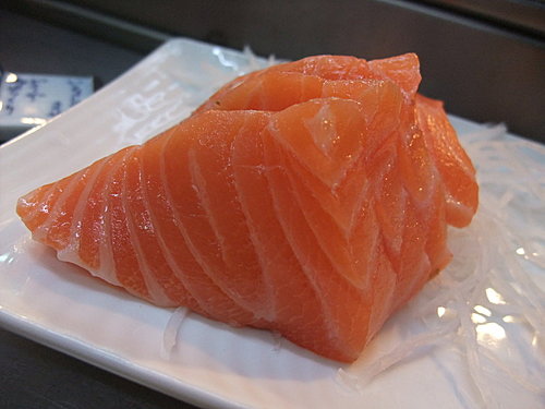 生魚片就是要這樣切大塊的吃才過癮, 好想念現磨的山葵沾醬喔!!!