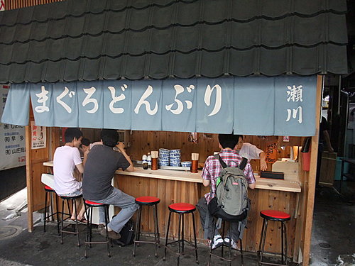 大江戶線散策的第一站築地市場,這是去年來沒吃到的瀨川鮪魚蓋飯.