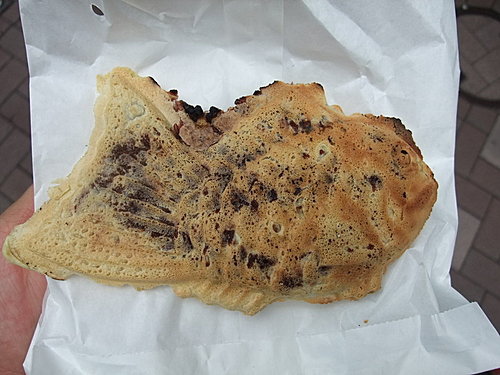 好吃的鯛魚燒,從頭到尾巴都是滿滿的紅豆餡,麵皮又很酥脆.(日幣150一匹)