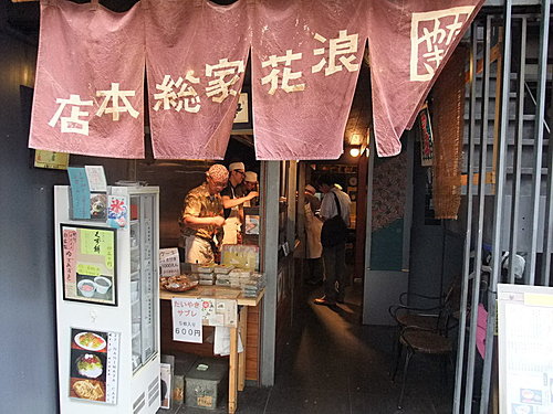 以鯛魚燒著名的浪花家總本店,透過櫃台看過去點心師父們聚精會神的製作點心.