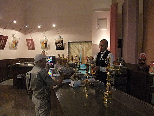 地下室有個品酒的地方,先到自動販賣機選擇你想品嘗的酒類.