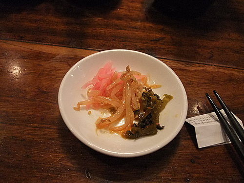 桌上的小菜都可以夾來吃,我覺得醃豆芽菜最好吃.