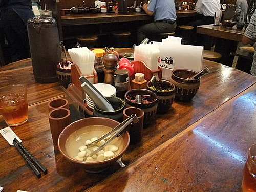 大大的桌子上擺滿了調味料, 還有提昇美味的神秘兵器.......