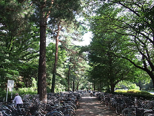 日本學生停車很厲害喔,真不知道最裡側的腳踏車要如何牽出來.