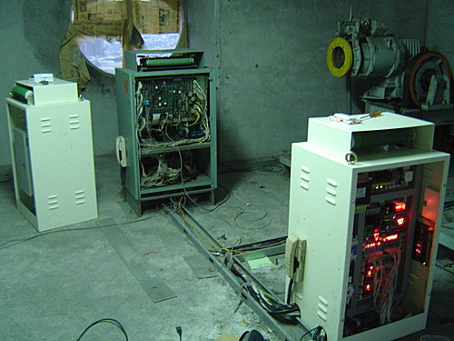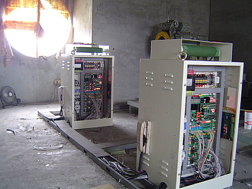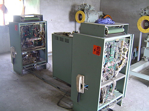 先拆一部控制盤進行改修工作,另一部繼續工作著.