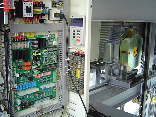 位於屋頂小機房中的永磁同步馬達控制盤和永磁同步馬達主機.