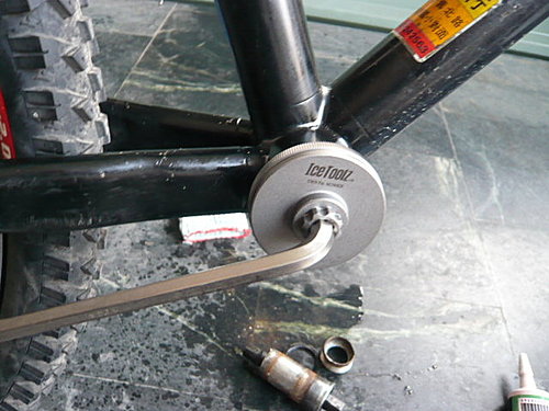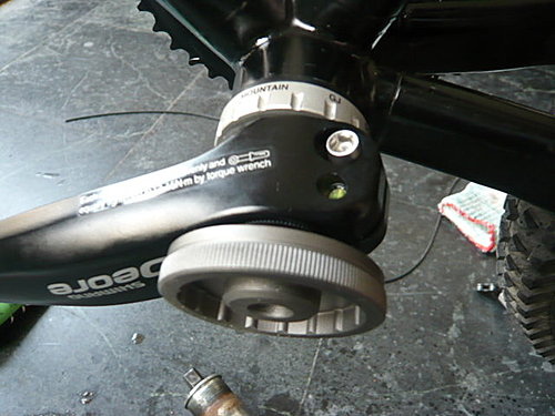 裝上左側的曲柄,同樣用特殊工具鎖緊曲柄蓋,然後慢慢將兩個曲柄固定螺絲鎖緊.