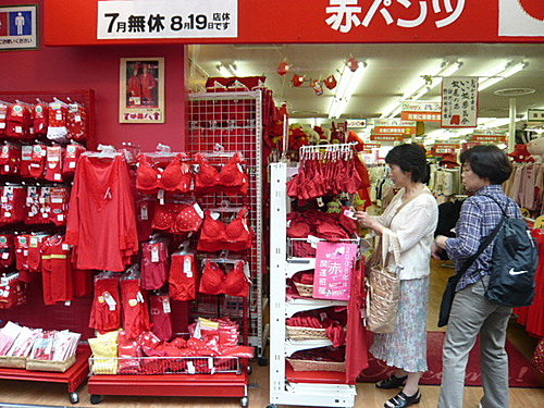 巢鴨的特產,紅色內衣褲. 日本人很少穿鮮豔的顏色服裝,可能都悶騷在裡面吧!!