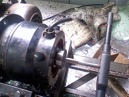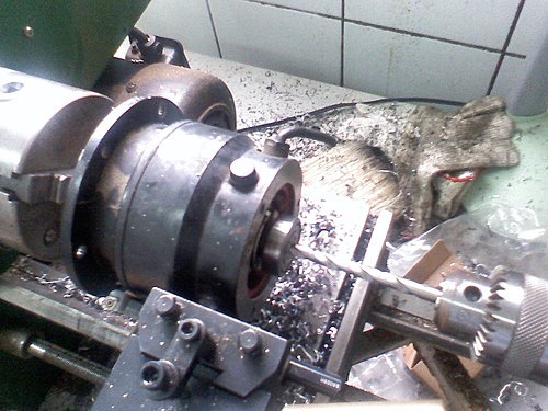 攻牙,並鎖上一支8mm螺絲,再車外徑為6mm(做的太順手忘了拍照了 ^_^)