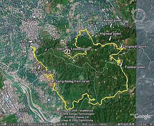 今天騎車的軌跡圖,其中的起點和終點應是同一點,但因GPS定位中的原因LOSE掉了.