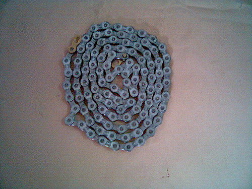 這是拆鏈條的地方,這裡有個活動點,抓住鏈條兩側,往中間推擠,就可以將鏈條截斷拆下.