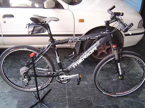 經過一番比較之後,決定就是 美利達的'冠軍一號' 了,全套的 shimano 08年XT傳動系統,車價也在接受的範圍內.但在不喜歡和別人 '撞車' 的心理因素下.決定一定要將冠軍一號大眾化塗裝的車架換掉.