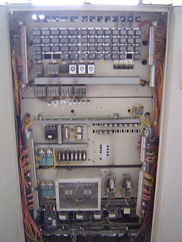 控制盤背面是複雜的接線,要更改任一個迴路,都要很努力的拉線,找出接點