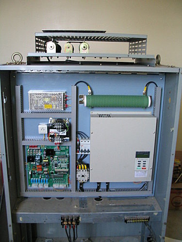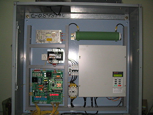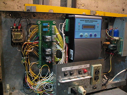 換上自家的廂上箱連接板,加上變頻門控制器.